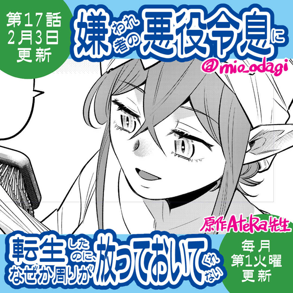 | 漫画家・おだぎみをが作画を担当する、新連載「嫌われ者の悪役令息に転生したのに、なぜか周りが放っておいてくれない」が、2024年7月2日(火曜)より連載開始(毎月第1火曜日更新)。 2026年3月3日(火曜)現在、第1話、第2話、第13話、第14話、第15話、第16話、第17話、第18話が無料公開中 ※次回更新日 : 2026年5月12日(火曜) ・作品タイトル:「嫌われ者の悪役令息に転生したのに、なぜか周りが放っておいてくれない」 ・原作:AteRa、絵:おだぎみを ・あらすじ: 現代日本のサラリーマンだった「俺」は、気がつくとゲームの世界に転生していた…… よりによってかませ役の醜い悪役令息、クラウス・ミュラーとして!! 原作ゲームの通りに進めば、勇者に断罪され処刑されてしまうと気づいた彼は、破滅エンドを回避すべく行動を始める。 努力を重ね、ヒロインや家族といった周囲の信頼を得ていくクラウス。 そのさなかで意図せず大活躍して注目を浴びてしまい……!? クズ男からの大逆転ファンタジー、堂々開幕!! ☆無料公開中(第1話、第2話、第13話、第14話、第15話、第16話、第17話、第18話) https://www.alphapolis.co.jp/manga/official/526000608 ※コミックス第2巻(連載第7回~12回収録)、絶賛発売中 https://www.alphapolis.co.jp/book/detail/8038194/12861 ※コミックス第1巻(連載第1回~6回収録)、絶賛発売中 https://www.alphapolis.co.jp/book/detail/8037745/11951 |
