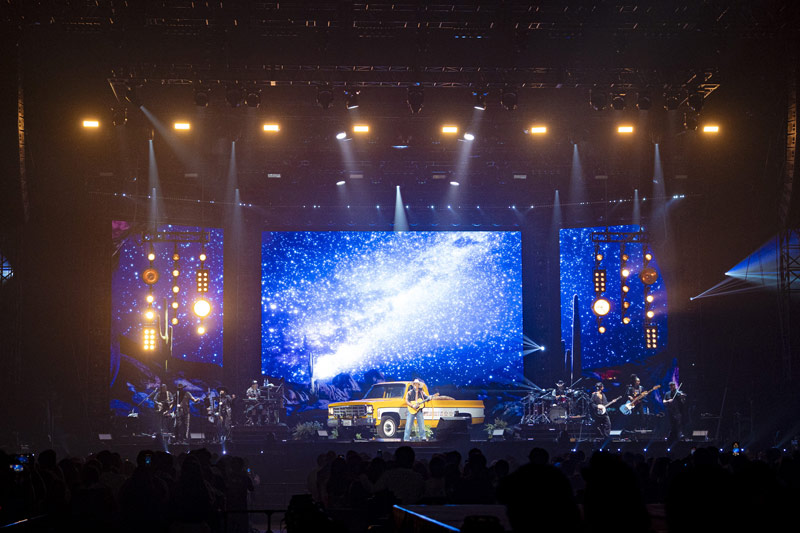 昨年行われたホールツアーとは一変、ステージの中央にはヴィンテージカーが置かれ、アリーナならではのスケール感たっぷりのステージングとなっており、バックには特大のLEDが設置され、楽曲の世界観に没入できる演出が取り入れられている。