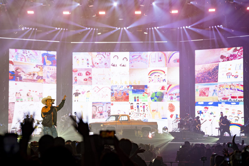 ライブでも、同じくファンクラブを通して子どもたちから募集した「ともだち」を描いた絵がLEDに映し出される楽しい演出も取り入れられた。