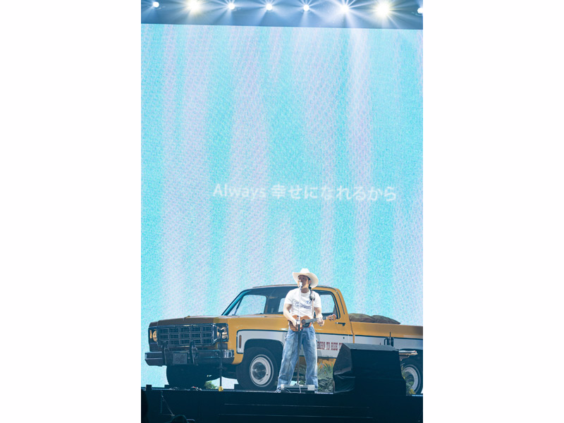 バンドとコーラスのセッションの後、LEDに映し出されたシャッターが開くと平井 大が車の荷台に登場し、「Country Road」を披露。LEDには道路が映し出され、まるでアメリカ西部をヴィンテージカーでドライブしているかのような演出で華々しくライブは幕を開ける。