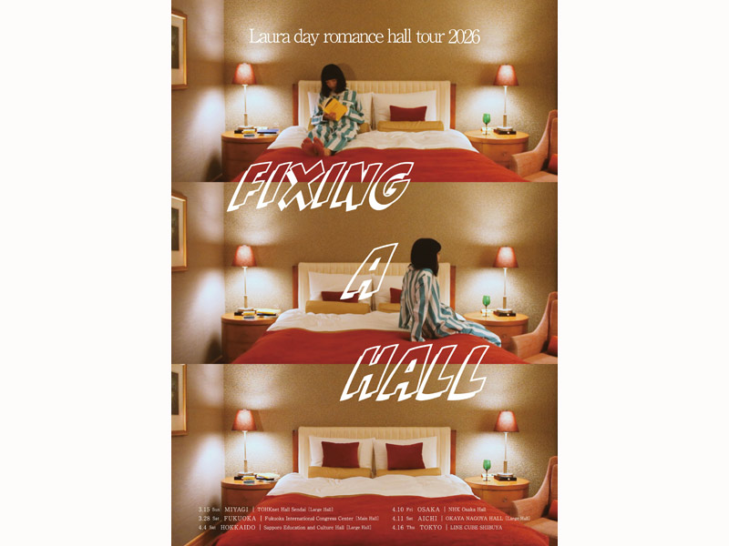 Laura day romance自身初となる、ホールツアー『Laura day romance hall tour 2026 “Fixing a hall”』は、3月15日(日)トークネットホール仙台(宮城)を皮切りに、全国6ホールでの開催が予定されている。