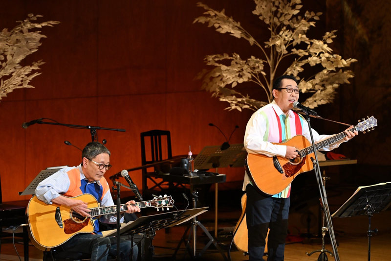 「よこはま詩集」「横浜縁日一六地蔵」「赤い靴」と、開催地・横浜にちなんだナンバーで幕開けし、繊細なギターの音色と温かいハーモニーが、音楽堂の響き豊かな空間に優しく広がる。