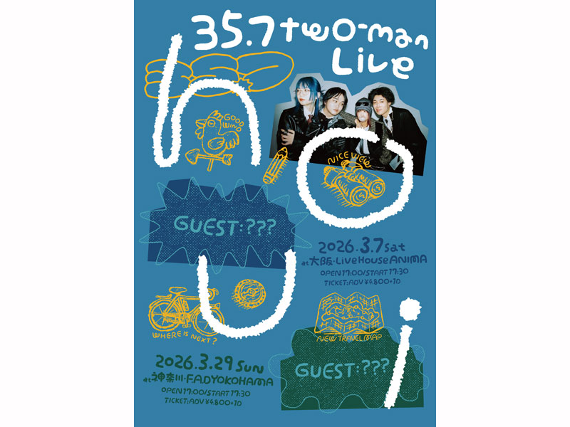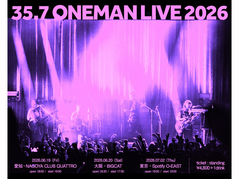 そんな35.7が、来年6-7月に、東名阪ワンマン【35.7 ONEMAN LIVE 2026】を開催すると発表、チケットのオフィシャル先行(抽選)がイープラスにて受付スタートした。
