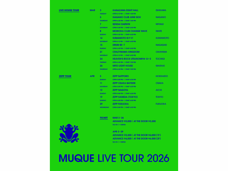 様々なアーティストと共に駆け抜けたmuqueだが、次なるツアーとして、2026年3月より「muque LIVE TOUR 2026」を開催すると発表した。