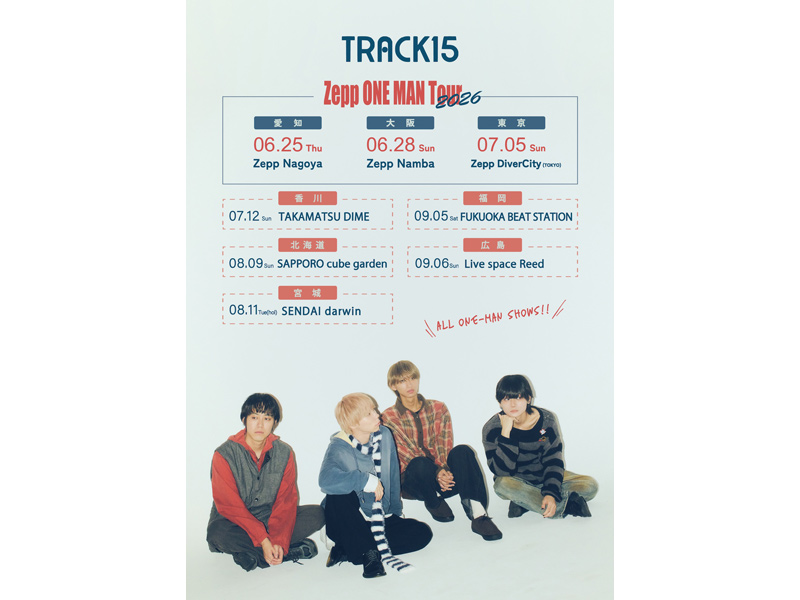 そのTRACK15が、先日開催を発表したZeppツアーに続き、全国5都市を巡るワンマンツアー『TRACK15 ONE MAN Tour』を開催することが明らかになった。