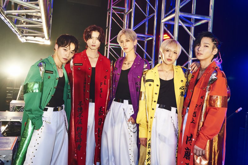 1曲目が終わり、バイクをふかすBGMが流れ始めると、なんと上空からメンバーカラーがあしらわれた特攻服が降りてくるという驚きの演出が。特攻服を羽織る姿は力強く、圧倒的な存在感を放っていた。