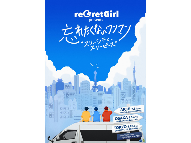 なお、reGretGirlは、7月より東名阪クアトロワンマン「忘れたくないワンマン “スリーシティ・スリーピース”」の開催が決定。チケットは、4月4日(土)正午よりオフィシャル最終抽選先行がスタートする。