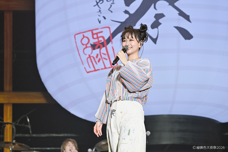本編ラストは再び和太鼓隊を迎え、スペシャルバージョンの「花になって」で締め括り。盛大な拍手に応えてのアンコールは「Mela!」。礼賛、BE:FIRST、スキマスイッチ、ジェラードンもステージに登場し、2日間にわたった「緑黄色大夜祭2026」は大きな感動と高揚が渦巻く中、幕を下ろした。2日目のMCで長屋は、「緑黄色社会の『緑黄色夜祭』。ダジャレから始まったお祭りが、ここまで大きくなりました」と語った。「こんなお祭りがずっとしたかったんです。この2日間をやって、もっともっと大きく、もっともっと楽しくしていけたらいいなと思います」――そんな長屋の言葉が、緑黄色社会のたくさんの「好き」が詰まった、この盛大なお祭りの未来を指し示しているようだった。